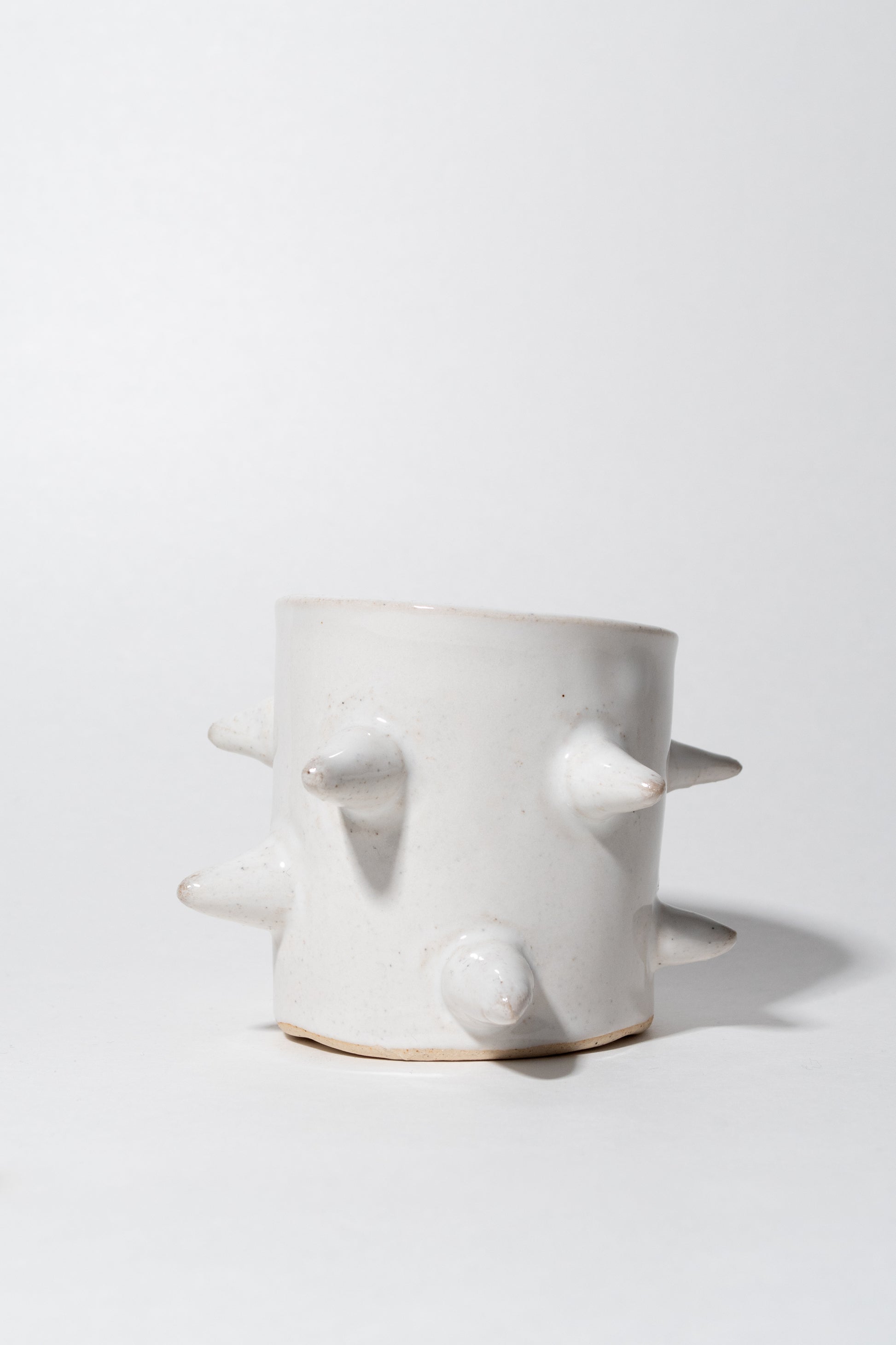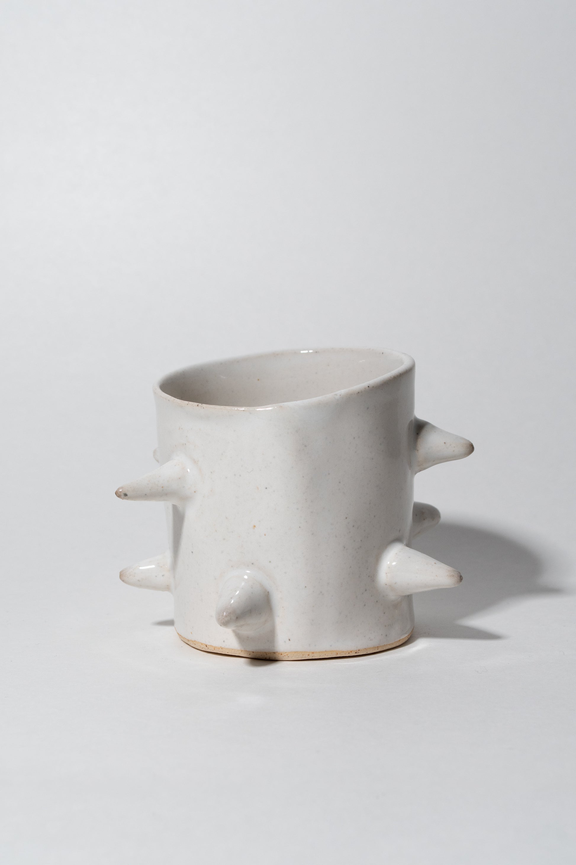 Hand built stoneware; finished with a white glaze.